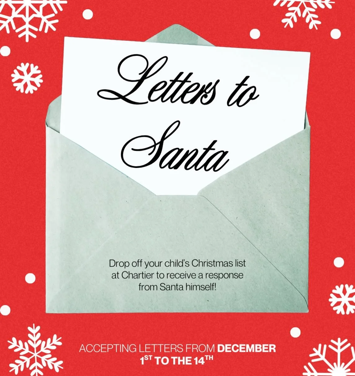 When you're in centreville, bring the kiddos to mail off their letter to Santa + Our Community Elves will make sure they get a custom response from Santa