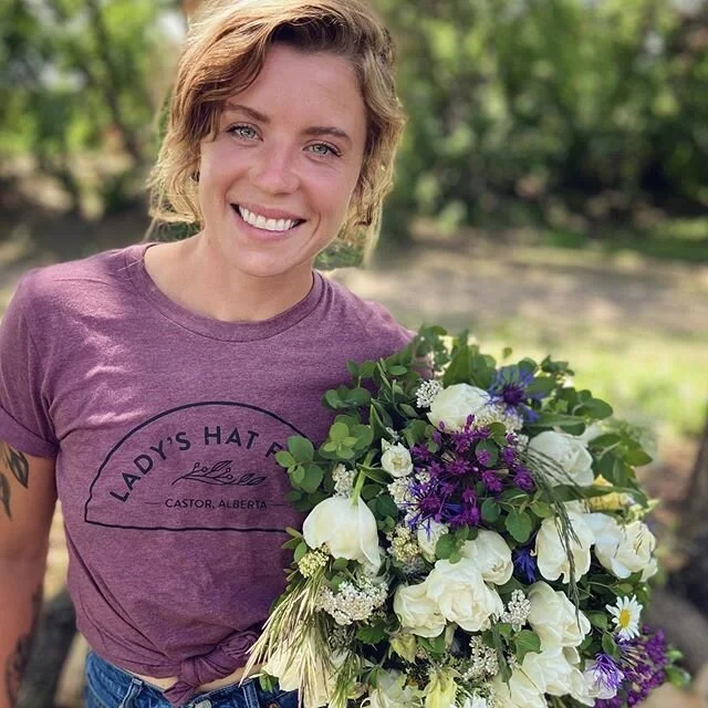 Nikki, from Lady’s Hat Farm is working towards the improvement of soil, animal welfare and consumer knowledge. She offers fresh flowers for bouquet subscriptions and weddings during our late-May to mid-September. In the fall and winter she offers farm-dried floral creations, and in the spring, ready-to-grow seedlings for your own flower dreams.